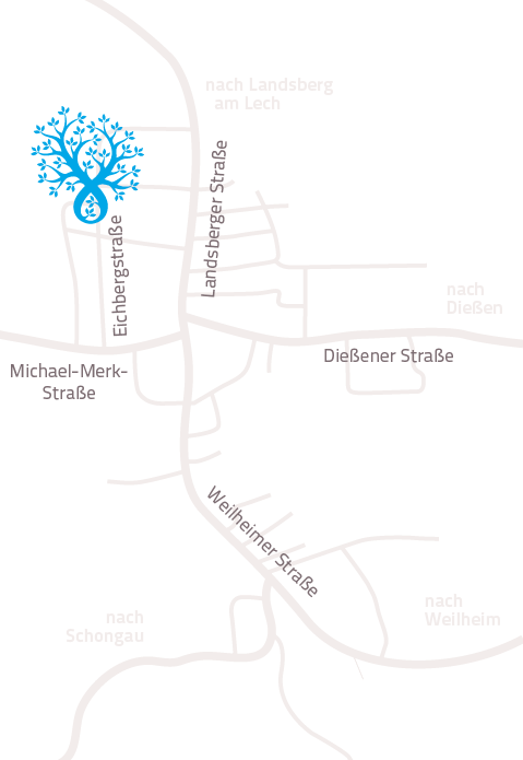 Unsere Praxis liegt inmitten des Dreiecks von Landsberg am Lech, Weilheim und Schongau. Von allen drei Städten sind wir ca. 15 km entfernt und bequem mit dem Auto zu erreichen.